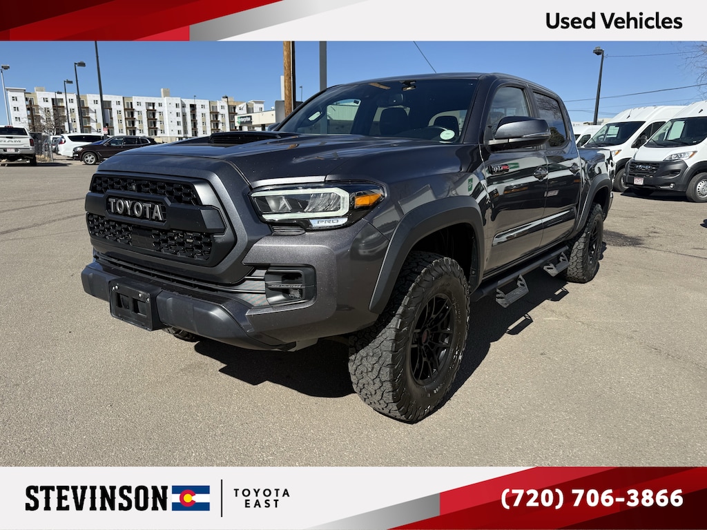 2020 Toyota Gray Tacoma 3.5L V6 PDI DOHC 24V LEV3-ULEV70 278hp V6 4WDStevinson Toyota East - STE is offering this 2020 Toyota Tacoma, TRD Pro, in Gray and Black Leather, only 115974 miles, Sunroof/Moonroof, Navigation/GPS/NAV, Heated Seats, Rear Back-Up Camera, One Owner, Clean CarFax, Blue Tooth, Leather, Tow Package, Apple CarPlay, Android Auto, 4WD, Air Conditioning, AM/FM radio: SiriusXM, Bumpers: body-color, Power door mirrors, Power steering, Power windows, Rear step bumper, Speed control.