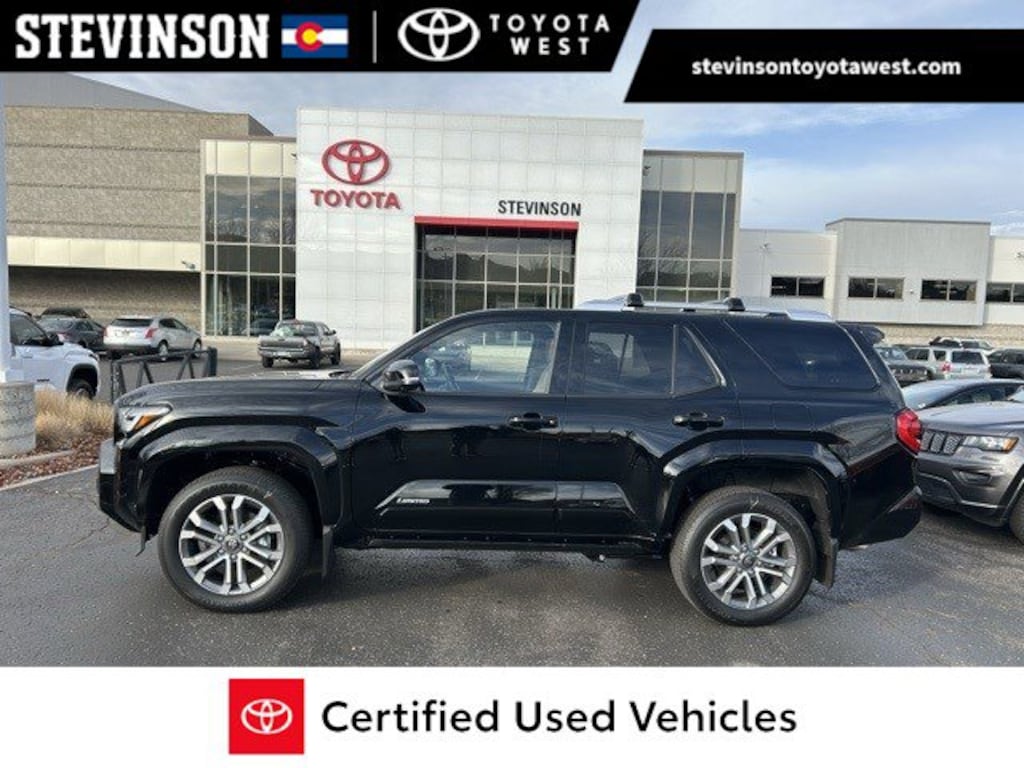 Black 2025 Toyota 4Runner Limited 4WD 8-Speed Automatic 2.4L 4-Cylinder Stevinson Toyota West - STW is offering this 2025 Toyota 4Runner Limited, in Black and Portobello Leather, low miles, only 636 miles, One Owner, Accident Free CarFax, Sunroof / Moonroof, Heated Seats, Navigation / GPS / NAV, Power Rear Liftgate, Rear Backup Camera, Ventilated Seats, Heated Steering Wheel, 4WD, Portobello w/Leather Seat Trim, ABS brakes, Active Cruise Control, Alloy wheels, Compass, Electronic Stability Control, Front dual zone A/C, Heated & Ventilated Front Bucket Seats, Heated door mirrors, Heated front seats, Illuminated entry, Inside Rear-View Mirror, Leather Seat Trim, Limited, Low tire pressure warning, Navigation System, Power moonroof, Remote keyless entry, Tow Technology Package, Traction control.