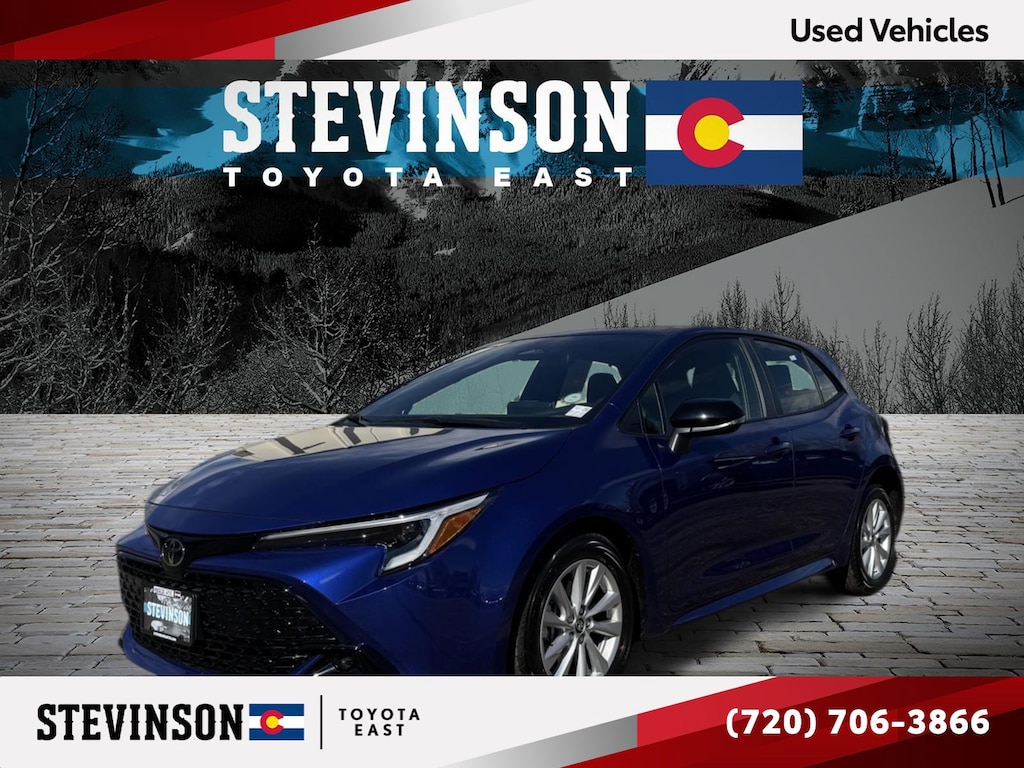 2026 Toyota Blue Corolla Hatchback 2.0L I4 FWDStevinson Toyota East - STE is offering this 2026 Toyota Corolla Hatchback, SE, in Blue and Black Cloth, only 195 miles, Rear Back-Up Camera, Blue Tooth, Apple CarPlay, Android Auto.