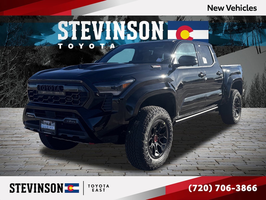 Experience the power, capability, and efficiency of the 2026 Toyota Tacoma Hybrid TRD Pro for yourself. Call Stevinson Toyota East at 303 340 2170 to confirm availability and schedule a no-obligation test drive! We are located at 444 S Havana St, Aurora, CO 80120 but also serving the greater Denver area, including Highlands Ranch, Parker, Central Park, Columbine, Littleton, Greenwood Village, Lakewood, Golden, Wheat Ridge, Arvada, Westminster, Thornton, Northglenn, Brighton, Englewood, Lone Tree, Boulder, Brighton, Louisville, Superior, Lafayette, Fort Collins, Greeley, Colorado Springs, Cheyanne, Castle Rock, Castle Pines, Centennial, Elizabeth, Franktown, Watkins, Bennett, Strasburg, Byers, Deer Trail, Limon, Kiowa, and Commerce City. *WWW.STEVINSONTOYOTAEAST.COM*