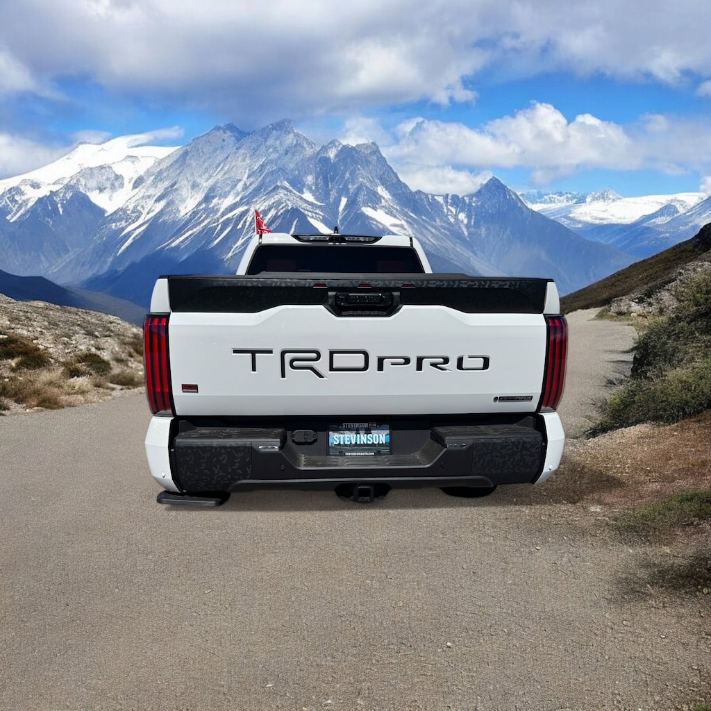 • TRD Pro Bed Lettering: Matte Black - TRD Pro lettering inserts emphasize the Tundra stamp in the tailgate and are an easy way to customize the look of your truck. Individual letters strongly adhere into the stamped tailgate logo. Attached with strong adhesive backing Includes matte black lettering