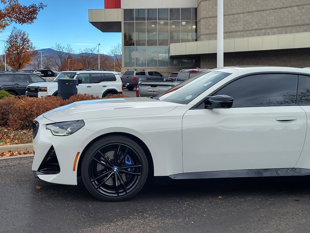 Alpine White 2022 BMW 2 Series M240i AWD 8-Speed Automatic Sport I6 Stevinson Toyota West - STW is offering this 2022 BMW 2 Series M240i, in Alpine White and Canberra Beige Canberra Beige Perforated Sens, Accident Free CarFax, Sunroof / Moonroof, Heated Seats, Navigation / GPS / NAV, Rear Backup Camera, Heated Steering Wheel, Active Park Distance Control, Adaptive Full LED Lights, Automatic High Beams, Connected Package Pro, Extended Shadowline Trim, Head-Up Display, Heated Front Seats, Heated Steering Wheel, Live Cockpit Pro w/Navi, M Shadowline Lights, Navigation, Navigation System, Parking Assistance Package, Parking Assistant Plus, Premium Package, Rear-View Camera, Shadowline Package, Surround View w/3D View, Universal Garage-Door Opener.
