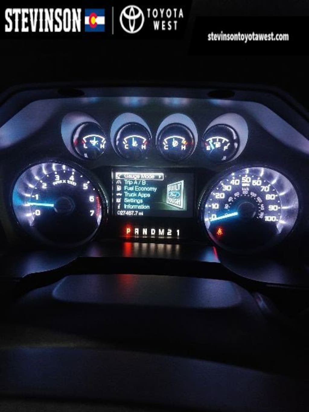 GVWR: 10,000 lb Payload Package, Platinum Package (6 Angular Chrome Step Bars, Body-Color Front & Rear Bumpers, Bright Chrome Door & Tailgate Handles, Chrome Exhaust Tip, Chrome Skull Caps on PowerScope Mirrors, Console, Door Trim, Memory Power Adjustable Pedals, PowerScope Trailer Tow Mirrors, Premium Leather-Wrapped/Wood Steering Wheel, Remote Start System, Tailgate Step & Handle, Unique Platinum Leather 40/Console/40 Seats, Unique Satin Chrome Grille, Universal Garage Door Opener, Voice-Activated Navigation, and Wheels: 20 Cast Aluminum w/Painted Pockets), 4WD, 10 Speakers, 3.73 Axle Ratio, 4-Wheel Disc Brakes, ABS brakes, Adjustable pedals, Air Conditioning, Alloy wheels, AM/FM radio: SiriusXM, Auto-dimming Rear-View mirror, Automatic temperature control, Brake assist, Bumpers: chrome, CD player, Compass, Delay-off headlights, Driver door bin, Driver vanity mirror, Dual front impact airbags, Dual front side impact airbags, Electronic Stability Control, Exterior Parking Camera Rear, Extra Heavy-Duty 200-Amp Alternator, Front anti-roll bar, Front Bucket Seats, Front Center Armrest, Front dual zone A/C, Front fog lights, Front reading lights, Fully automatic headlights, Heated door mirrors, Illuminated entry, Leather steering wheel, Low tire pressure warning, Outside temperature display, Overhead airbag, Overhead console, Panic alarm, Passenger door bin, Passenger vanity mirror, Power door mirrors, Power driver seat, Power passenger seat, Power steering, Power windows, Premium audio system: Sony, Premium Leather Seating Surfaces 40/Console/40, Radio data system, Radio: Premium Sony Audio w/Single-CD/MP3, Rear Parking Sensors, Rear reading lights, Rear seat center armrest, Rear step bumper, Rear window defroster, Remote keyless entry, Security system, SiriusXM Satellite Radio, Speed control, Split folding rear seat, Steering wheel mounted audio controls, SYNC w/MyFord Touch & SYNC Services, Tachometer, Telescoping steering wheel, Tilt steering wheel, Traction control, Trip computer, Turn signal indicator mirrors, and Variably intermittent wipers.