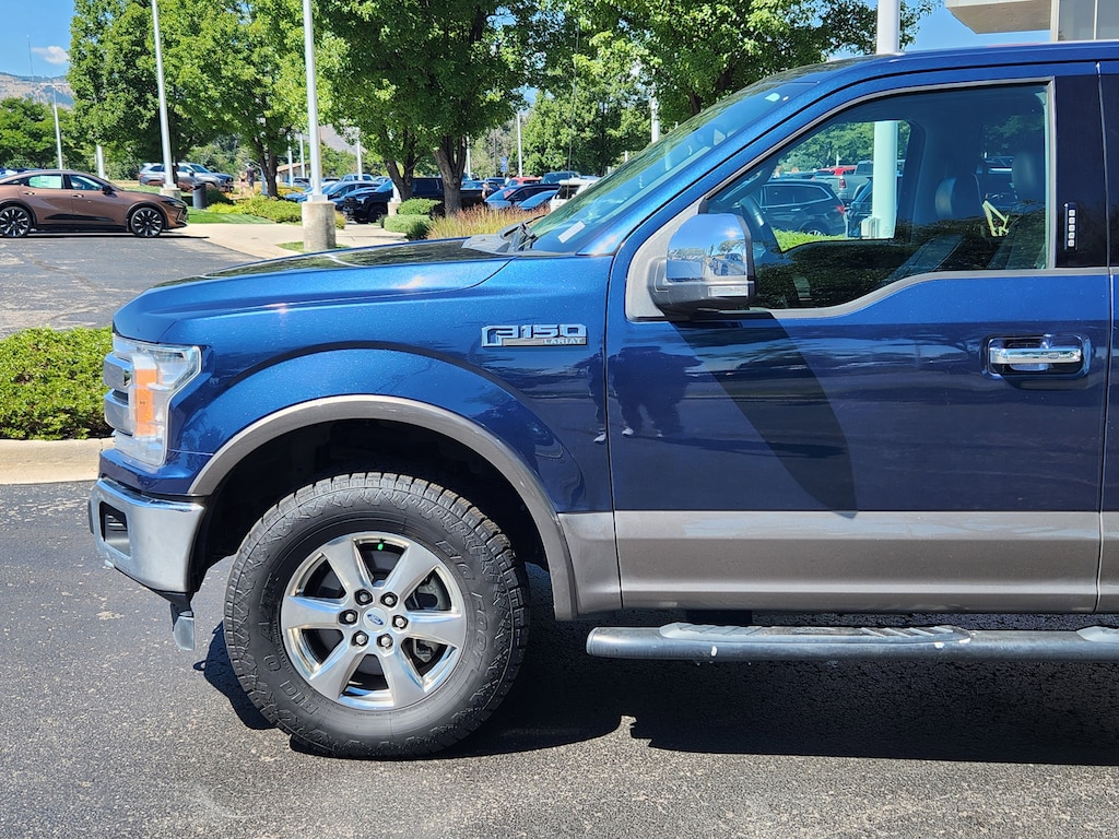 CARFAX One-Owner. Blue Jeans Metallic 2018 Ford F-150 Lariat 4WD 10-Speed Automatic 3.5L V6 EcoBoost Stevinson Toyota West is offering this 2018 Ford F-150 Lariat, in Blue Jeans Metallic and Black Leather, Sunroof / Moonroof, Heated Seats, Navigation / GPS / NAV, Rear Backup Camera, Ventilated Seats, Heated Steering Wheel, 4WD, 110V/400W Outlet, 4x4 FX4 Off-Road Bodyside Decal, BLIS Blind Spot Information System, Chrome 2-Bar Grille w/4 Minor Bars, Chrome Angular Step Bars, Chrome Door & Tailgate Handles w/Body-Color Bezel, Chrome Skull Caps on Exterior Mirrors, Equipment Group 501A Mid, FX4 Off-Road Package, GVWR: 7,050 lbs Payload Package, Hill Descent Control, Lariat Chrome Appearance Package, LED Sideview Mirror Spotlights, Off-Road Tuned Front Shock Absorbers, Power Glass Sideview Mirr w/Body-Color Skull Caps, Remote Start System w/Remote Tailgate Release, Reverse Sensing System, Single-Tip Chrome Exhaust, Universal Garage Door Opener, Wheels: 18 Chrome-Like PVD.
