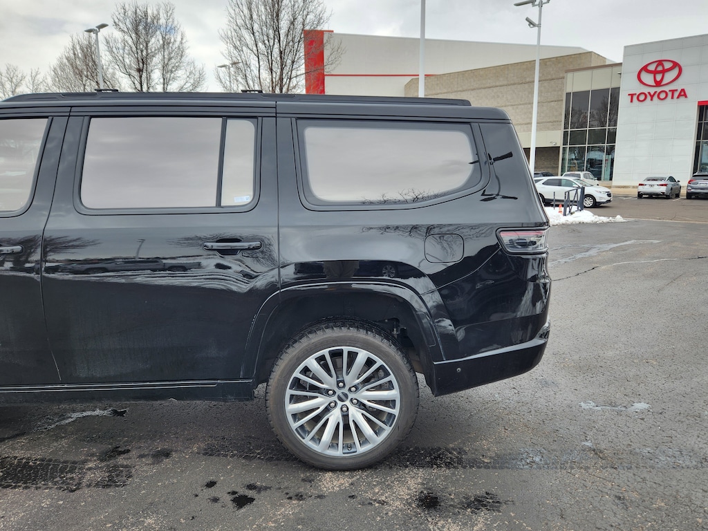 Quick Order Package 23W, Two Tone Paint Group, 3.92 Rear Axle Ratio, 3rd row seats: bench, 4-Wheel Disc Brakes, ABS brakes, Adjustable pedals, Air Conditioning, Alloy wheels, AM/FM radio: SiriusXM with 360L, Anti-whiplash front head restraints, Audio memory, Auto High-beam Headlights, Auto-dimming door mirrors, Auto-dimming Rear-View mirror, Auto-leveling suspension, Automatic temperature control, Body Color Roof, Brake assist, Bumpers: body-color, Compass, Delay-off headlights, Driver door bin, Driver vanity mirror, Driver's Seat Mounted Armrest, Dual front impact airbags, Dual front side impact airbags, Electronic Stability Control, Four wheel independent suspension, Front anti-roll bar, Front Bucket Seats, Front Center Armrest w/Storage, Front dual zone A/C, Front fog lights, Front reading lights, Fully automatic headlights, Garage door transmitter, Genuine wood console insert, Genuine wood dashboard insert, Genuine wood door panel insert, Heads-Up Display, Heated door mirrors, Heated front seats, Heated rear seats, Heated steering wheel, Illuminated entry, Knee airbag, Leather steering wheel, Low tire pressure warning, Memory seat, Navigation System, Night vision lights, Normal Duty Suspension, Occupant sensing airbag, Outside temperature display, Overhead airbag, Overhead console, Panic alarm, Passenger door bin, Passenger seat mounted armrest, Passenger vanity mirror, Pedal memory, Power adjustable front head restraints, Power door mirrors, Power driver seat, Power Liftgate, Power moonroof, Power passenger seat, Power steering, Power windows, Premium Leather Trimmed Bucket Seats, Radio data system, Radio: Uconnect 5 Nav w/12.0 Display, Rain sensing wipers, Rear air conditioning, Rear anti-roll bar, Rear dual zone A/C, Rear reading lights, Rear seat center armrest, Rear window defroster, Rear window wiper, Reclining 3rd row seat, Remote keyless entry, Roof rack, Security system, Speed control, Speed-sensing steering, Speed-Sensitive Wipers, Split folding rear seat, Steering wheel memory, Steering wheel mounted audio controls, Tachometer, Telescoping steering wheel, Tilt steering wheel, Traction control, Trip computer, Turn signal indicator mirrors, Variably intermittent wipers, Ventilated front seats, Ventilated rear seats, Voltmeter, and Wheels: 22 x 9.0 Premium 4 Aluminum.