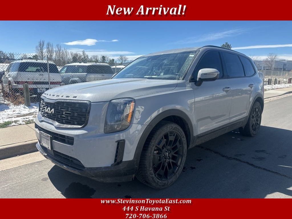 Stevinson Toyota East - STE is offering this 2022 Kia Telluride, EX, in Wolf Gray and Black Leather, only 99423 miles, Sunroof/Moonroof, Navigation/GPS/NAV, 3RD Row Seat, Heated Seats, Cooled Seat, Rear Back-Up Camera, Clean CarFax, Power Lift Gate, Blue Tooth, Leather, Apple CarPlay, Android Auto, 20 x 7.5 Machined Alloy Wheels, 2nd Row Captain Chairs, Black Finish Radiator Grille, EX Premium Package, Exclusive Black Headlight Bezels, Front & Rear Gloss Black Finish Bumper Skid Plates, Gloss Black Finish Exterior Emblems, Gloss Black Finish Front & Rear Door Garnish, Gloss Black Finish Roof Rails, LED Headlamps, Navigation System, Nightfall Edition Package, Satin Chrome Roof Rails, Wheels: 20 x 7.5 Exclusive Black Alloy.