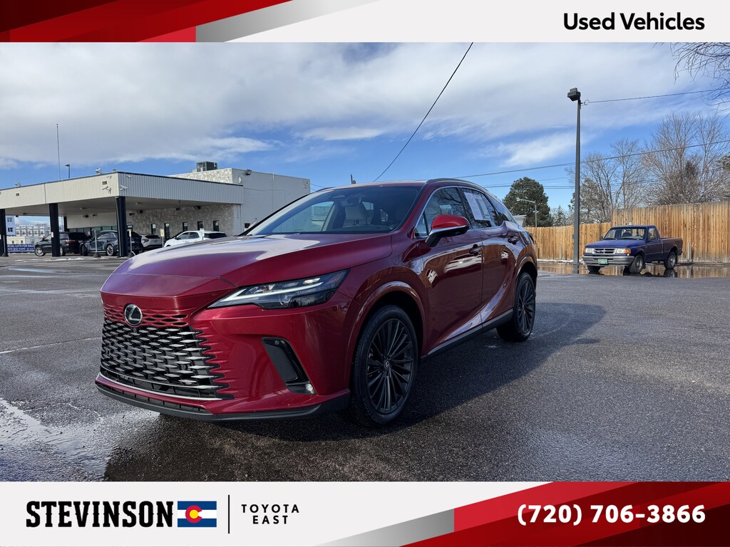 Stevinson Toyota East - STE is offering this 2024 Lexus RX, 350 Premium, in Red and Palomino Leather, only 43520 miles, Sunroof/Moonroof, Navigation/GPS/NAV, Heated Seats, Cooled Seat, Rear Back-Up Camera, One Owner, Clean CarFax, Power Lift Gate, Blue Tooth, Leather, Non-Smoker, Apple CarPlay, Android Auto, Palomino w/Ash Bamboo w/Leather Seat Trim, 8-Way Power Driver & Front Passenger Seat Adjusters, Active Cruise Control, Convenience Package, Electrochromic Heated Outside Rearview Mirror, Heated & Ventilated Front Bucket Seats, Lane Change Assist w/Lane Keeping Assist System, Navigation System, Radio: Lexus Interface w/14 HD Touchscreen Display.