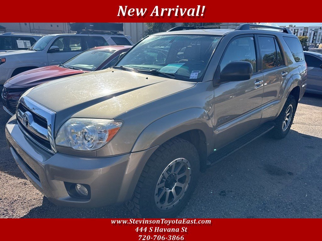 Stevinson Toyota East is offering this 2008 Toyota 4Runner, SR5, in Driftwood Pearl and Taupe Cloth, Sunroof/Moonroof, 4WD, Taupe w/Cloth Seat Trim, ABS brakes, Alloy wheels, Electronic Stability Control, Illuminated entry, Low tire pressure warning, Remote keyless entry, Traction control.
