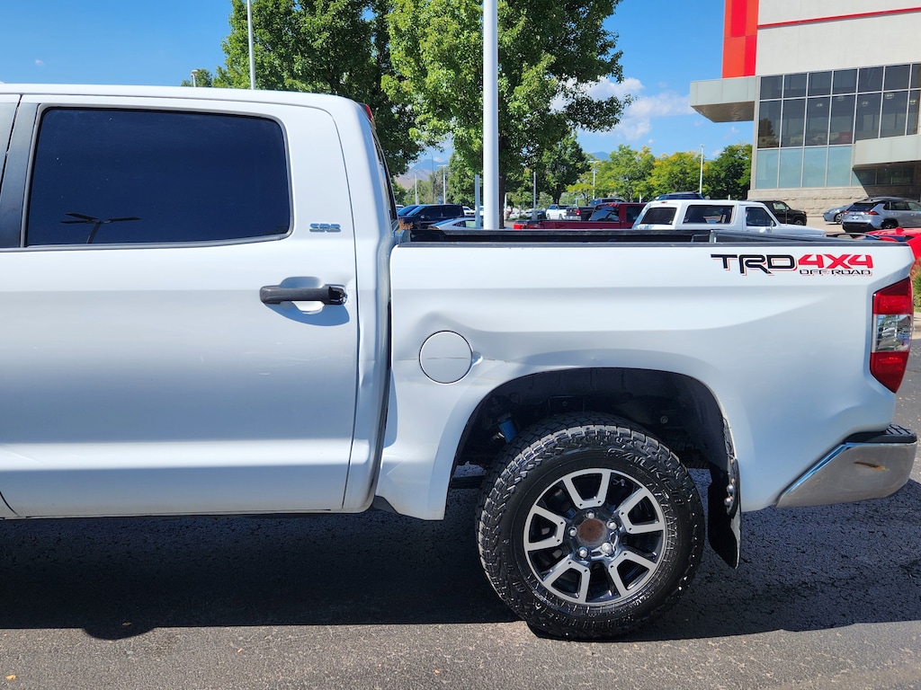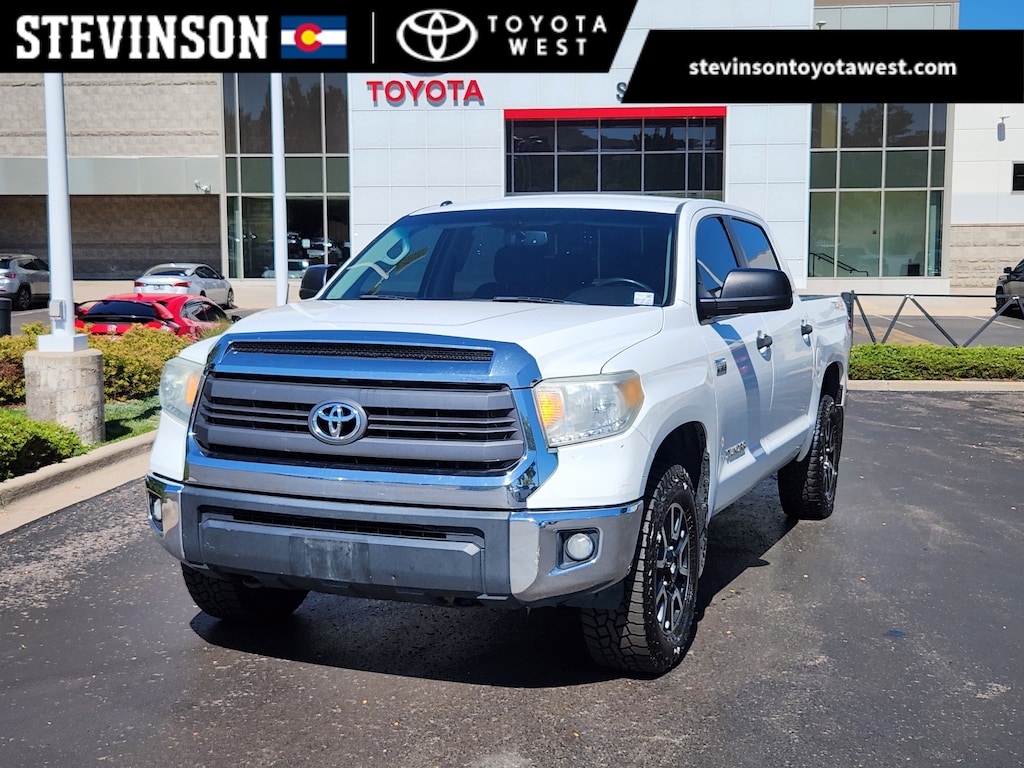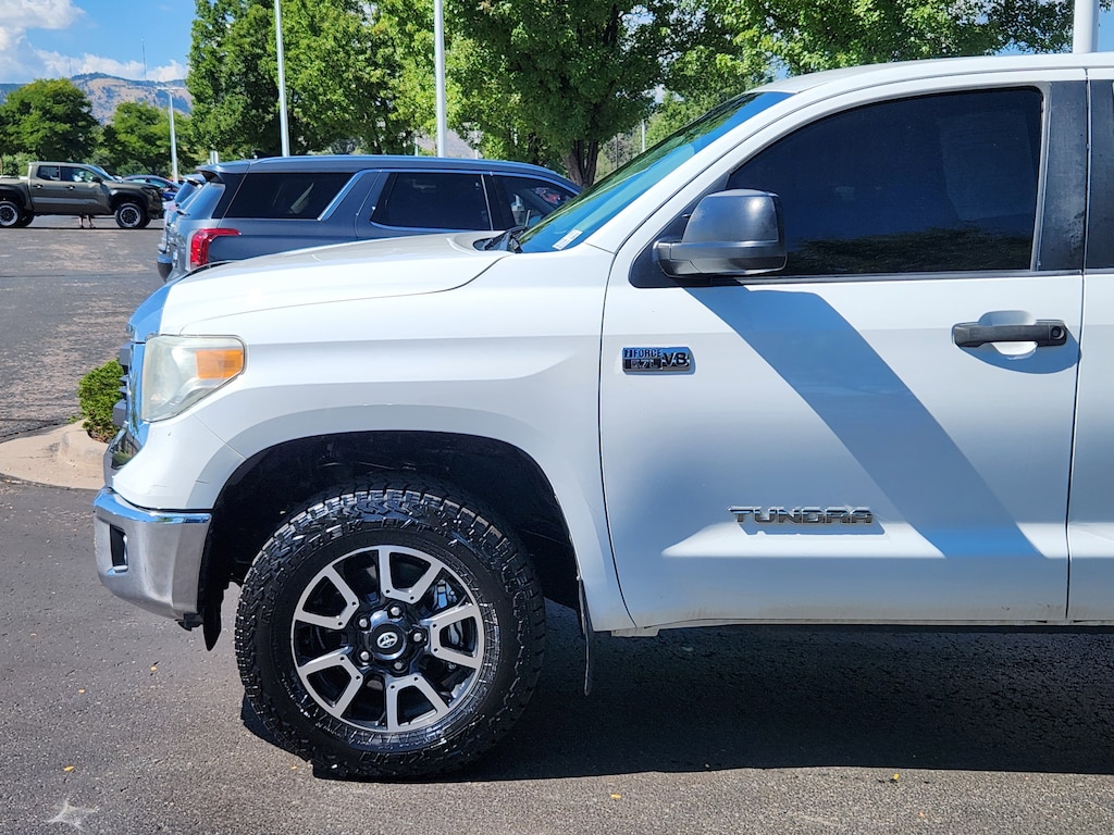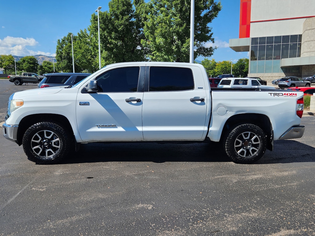 Super White 2015 Toyota Tundra SR5 5.7L V8 4WD 6-Speed Automatic Electronic with Overdrive 5.7L 8-Cylinder SMPI DOHC 4WD, Black w/Cloth Seat Trim (FD), 18 x 8J 5-Spoke TRD Off-Road Alloy Wheels, ABS brakes, Anti-Theft Immobilizer w/Alarm, Auto-Dimming Rear-View Mirror, Bilstein Shock Absorbers, Compass, Electronic Stability Control, Fabric Seat Trim w/TRD Off-Road Package, Front Bucket Seats, Heated door mirrors, HomeLink Universal Transceiver, Illuminated entry, Low tire pressure warning, Rear Privacy Glass, Remote keyless entry, SR5 Upgrade Package, Traction control, TRD Off Road Package, TRD Off-Road Graphics, Urethane Tilt/Telescopic Steering Wheel.