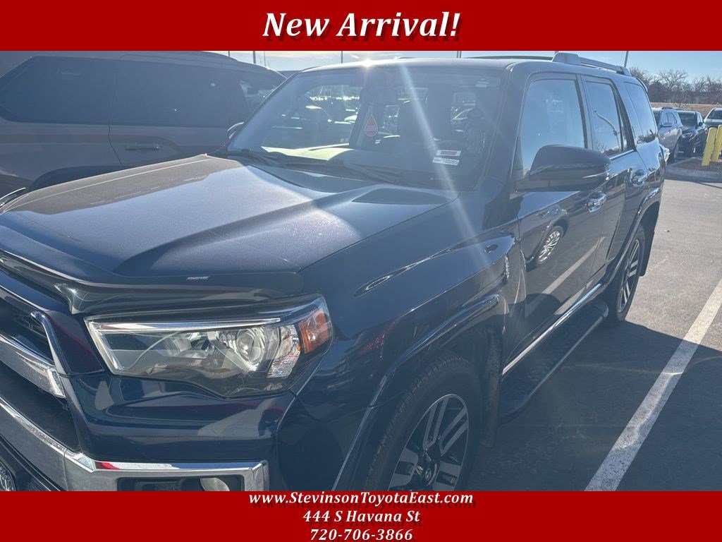 Stevinson Toyota East - STE is offering this 2019 Toyota 4Runner, Limited, in Nautical Blue Metallic and Black Graphite Leather, only 76172 miles, Sunroof/Moonroof, Navigation/GPS/NAV, Heated Seats, Cooled Seat, Rear Back-Up Camera, Clean CarFax, Blue Tooth, Leather, Tow Package, Non-Smoker, 4WD, Black Graphite w/Leather Seat Trim, Auto-Dimming Rear-View Mirror, Body Color Heated Mirrors, Garage Door Opener, Limited Package, Moonroof w/Tilt Up & Slide, Right & Left Individual Air Conditioner, Silver Roof Rails.