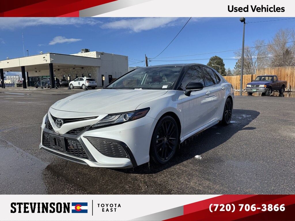 Stevinson Toyota East - STE is offering this 2021 Toyota Camry, XSE V6, in White and Cockpit Red Leather, only 65410 miles, Sunroof/Moonroof, Navigation/GPS/NAV, Heated Seats, Cooled Seat, Rear Back-Up Camera, Blue Tooth, Leather, Non-Smoker, Apple CarPlay, Android Auto, Cockpit Red w/Perforated Leather Seat Trim, ABS brakes, Active Cruise Control, Alloy wheels, Bird's Eye View Camera, Compass, Driver Assist Package, Electronic Stability Control, Front dual zone A/C, Heated door mirrors, Heated front seats, Illuminated entry, Intelligent Clearance Sonar (ICS), Low tire pressure warning, Multi-Stage Ventilated Front Seats, Navigation Package, Navigation System, Perforated Leather Seat Trim, Power moonroof, Radio: AM/FM/HD Premium Audio w/JBL w/Clari-Fi, Rear Cross Traffic Braking, Remote keyless entry, Traction control.