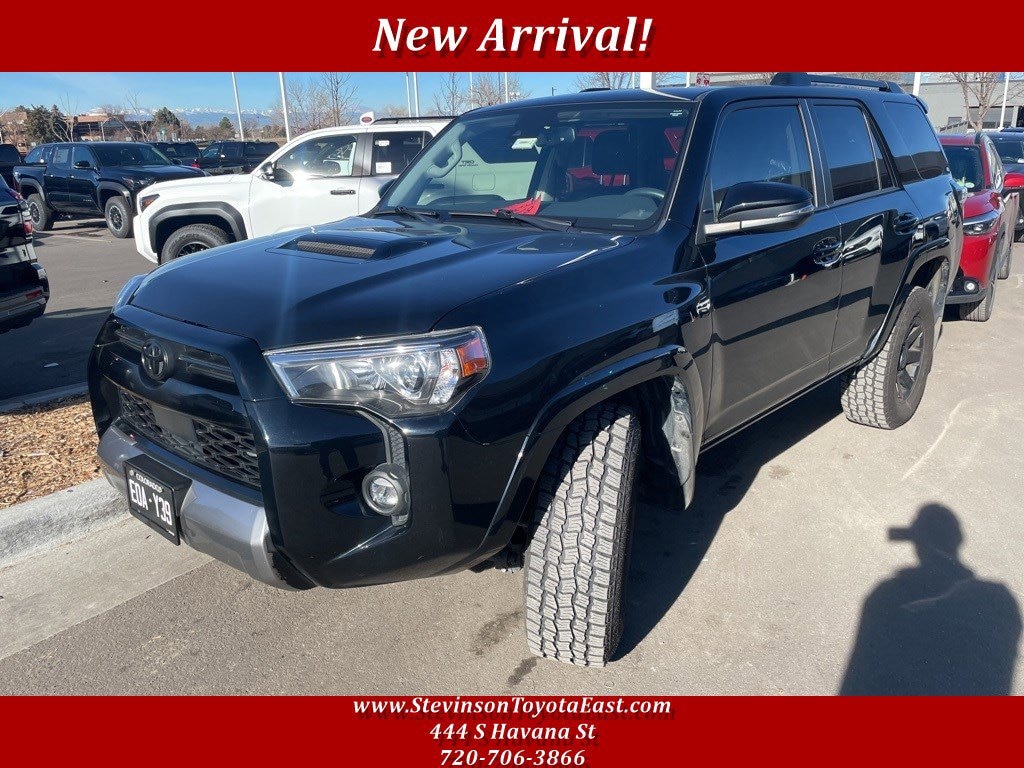 Stevinson Toyota East - STE is offering this 2022 Toyota 4Runner, TRD Off-Road Premium, in Midnight Black Metallic and Black/Graphite Leather, only 34987 miles, Sunroof/Moonroof, Navigation/GPS/NAV, Heated Seats, Rear Back-Up Camera, Clean CarFax, Blue Tooth, Leather, Tow Package, Non-Smoker, Off Road Tires and Wheels!, Apple CarPlay, Android Auto, 4WD, Black/Graphite w/Leather Seat Trim, Active Cruise Control, Black Roof Rails, Blind Spot Monitor (BSM), Garage Door Opener, Kinetic Dynamic Suspension System (KDSS), Moonroof Package, Moonroof w/Tilt Up & Slide, Off Road Package, Off Road Premium Package w/SofTex, Outside Rear View Mirror.