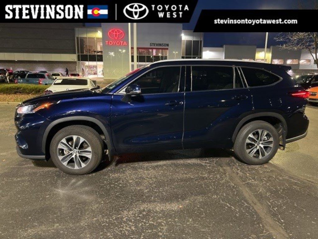Blueprint 2022 Toyota Highlander XLE AWD 8-Speed Automatic 3.5L V6 DOHC Stevinson Toyota West - STW is offering this 2022 Toyota Highlander XLE, in Blueprint and Harvest Beige Artificial Leather, One Owner, Accident Free CarFax, Sunroof / Moonroof, Heated Seats, Power Rear Liftgate, Rear Backup Camera, Heated Steering Wheel, AWD, Apple CarPlay/Android Auto.