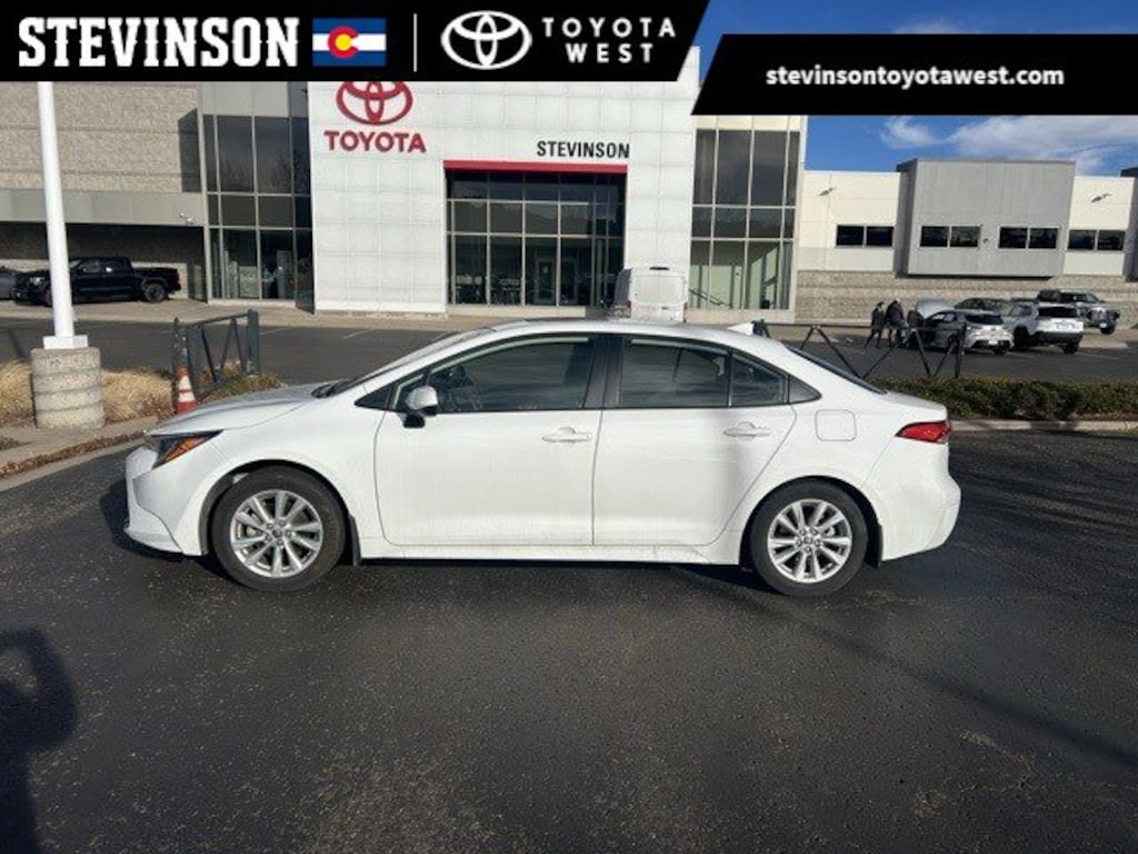 Wind Chill Pearl 2023 Toyota Corolla LE FWD CVT 2.0L I4 DOHC 16V Stevinson Toyota West - STW is offering this 2023 Toyota Corolla LE, in Wind Chill Pearl and Black Cloth, low miles, only 18247 miles, One Owner, Accident Free CarFax, Sunroof / Moonroof, Rear Backup Camera, 16 Alloy Wheels, Color-Keyed Heated Power Outside Mirrors, Front Doors Smart Key System, LE Premium Package, Power Tilt/Slide Moonroof w/Sliding Sunshade.